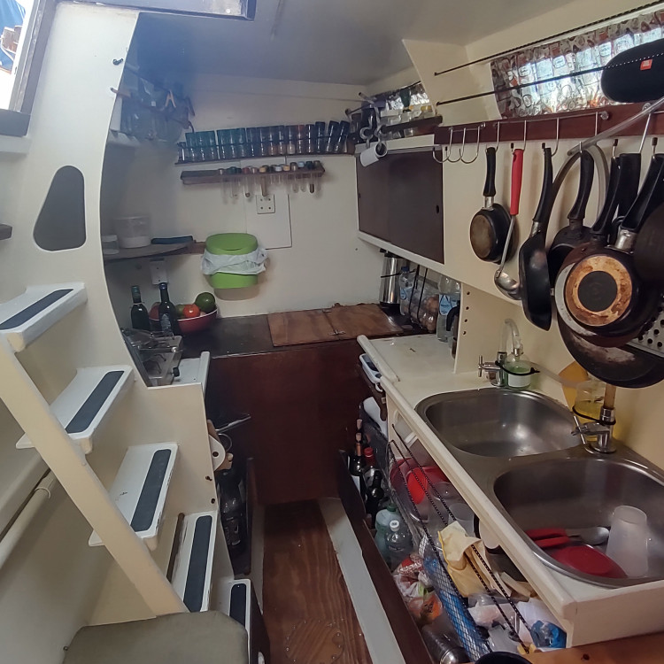 Veleiro Catamarã modelo Tiki 38 do projetista James Wharram, internacionalmente reconhecido como marinheiro e guerreiro em qualquer tipo de mar. Construído em compensado naval e resina epóxi de alta qualidade, para uso particular. Muito conforto e segurança. 11,6 m de comprimento e 6,2m de boca Lotação no documento da Marinha 17 passageiros + 1 Navegação em águas abrigadas 13 passageiros + 1 Navegação Costeira 7 passageiros + 1 Navegação Oceânica Pé direito (medidas): Cozinha Bombordo 1,95m Sala Bombordo 1,85m Cabine de Casal de Proa Bombordo 1,50m (esta cabine tem o piso elevado pois o piso está preparado para receber um tanque de Aquaponia, que não foi instalado, o piso pode ser rebaixado facilmente e o pé direito ficar 1,79m ou 1,84m, depende onde posicionar o piso) Lavatório Cabine de Solteiro de popa Boreste 1,90m Cabine de Casal Boreste 1,90m WC Cabine de Proa Boreste 1,79 (possibilidade de abaixar o piso, pé direito vai para 1,84m) Casaria 1,95m PERNOITE para até 9 pessoas: Cabine de Casal Master casco boreste Cabine de Solteiro boreste Cabine de Casal na proa bombordo Cabine de casal na sala (a sala se transforma numa cabine de casal do mesmo tamanho que a cabine master) Na Casaria dormem 2 pessoas. Cascos e decks Compensado naval de pinho canadense prensado com resina fenólica, alta qualidade. Utilização de madeiras nobres: cedro rosa, timburi, sucupira, massaranduba, ipê. Laminação com tecido de fibra de vidro e resina epóxi. Tinta PU WEG Anti-encrustante Coppercoat original. Mastreação Vela principal carangueja, vela do mastro de vante carangueja e Genoa com enrolador Alado. Velas com sacos de proteção contra sol. Todas as adriças e escotas são cabos pré-tensionados. Catraca Lewmar 30 Moitões Nautos e Harken (R$ 60.000,00 só de moitões) Tanques de água Cada casco possui um tanque abaixo dos pisos com 155l cada. 3 Tanques de água laminados acima das pias da cozinha (60l), WC principal (20l) e pia da suíte (40l), pintados com tinta especial para tanque de água potável. Água cai por gravidade não necessitando de bombas elétricas, economizando água e energia. Bomba elétrica para levar a água do tanque principal abaixo dos pisos para esses tanques de água acima das pias. WC Vaso manual instalado. Vaso Jabsco elétrico de reserva. Bomba de porão Piso do WC laminado para maior durabilidade Tanque de dejetos de 80l com filtro de carvão, preparado para marinas no exterior. Motor 2 Motores de Popa 2T 15hp Idea 2021 Comandos a distância. Eletrônicos/ Navegação 1 Antena VHF 9db AIS Owna KP 708 (tela de 7”) 2 Placas Solares de 395W 2 Controladores de Carga de 40A 2 Baterias Freedom 240ah. Fios estaiados em todas as instalações. Biruta no mastro. GPS Garmin manual 78 SC. Âncora e Cabos Rocna 25kg com 30m de corrente 8mm 50m de cabo torcido 3 pernas 18mm poliamida Âncora reserva Bruce 10kg com 5m de corrente de 10mm 50m de Cabo torcido 3 pernas poliéster 50m Cabo Torcido 3 pernas 25mm para Reboque 6X 12m Cabo Poliester 10mm para atracação 2X 10m Cabos pre estirados 10mm Guincho manual Equipamentos de Segurança 12 Coletes Salva Vidas Classe II G + 55kg 2x Coletes Inflável Automático 2 coletes infantis 4X Cinto peitoral de Segurança com mosquetão de engate rápido Cozinha Bomba elétrica para levar água do tanque abaixo do piso para tanque acima da pia Geladeira 120l construída com isolamento de PU e laminação interna, Kit de geladeira com compressor a distância da Elber. Bote de apoio Modelo Candy 8, construído em compensado naval de Copaíba e Resina Epóxi de alta qualidade, capacidade para até 4 pessoas. Bote rígido muito melhor que inflável sem dúvida. Capa protetora para o bote. Defensas 2X Defensas redondas grandes vermelhas tamanho A4 Casaria (cabine central entre os cascos) A Casaria tem fechamento completo com lona e acrílico para melhor proteção e conforto. Muita proteção em dias de chuva. Teto da casaria enorme para proteção do sol.